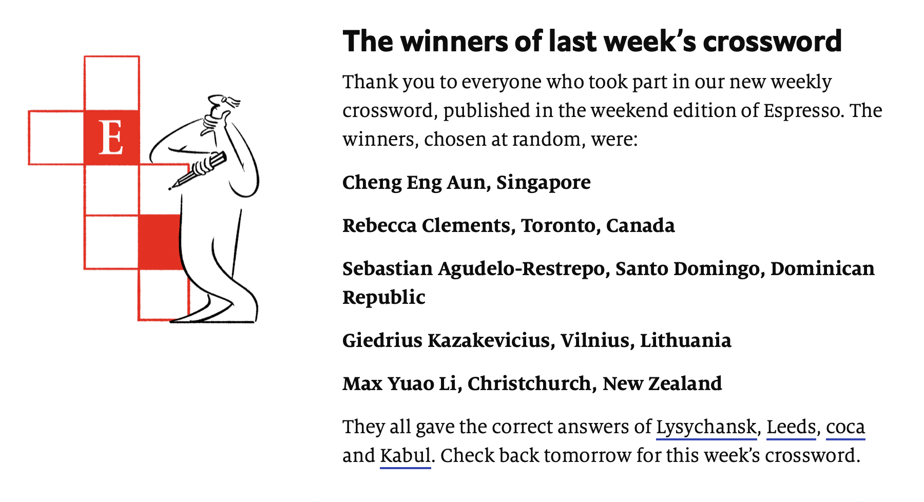 另外,《经济学人》的“Week’s quiz winner”终于抽到我了,开心。